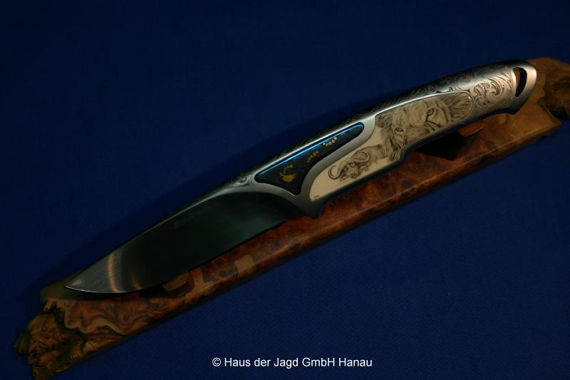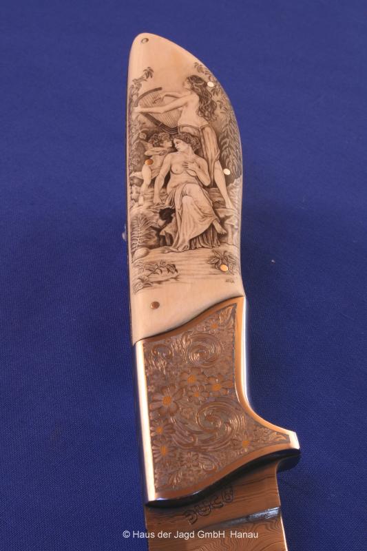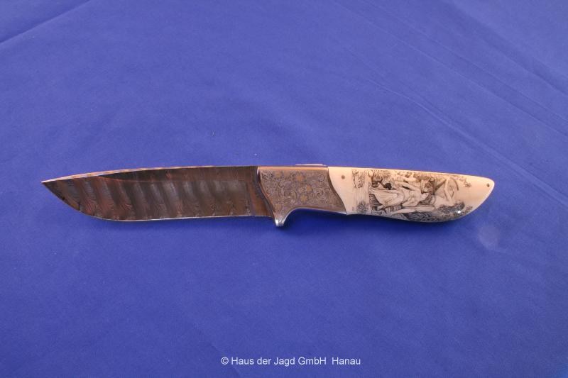Klinge 11 cm, RWL 34-Stahl, Griff Elfenbein mit Scrimshaw (Attila)