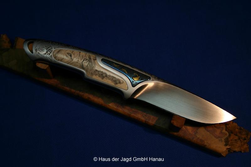 HRC: 67°, Griff: Titan, schwarze Lederscheide m. Gürtelclip