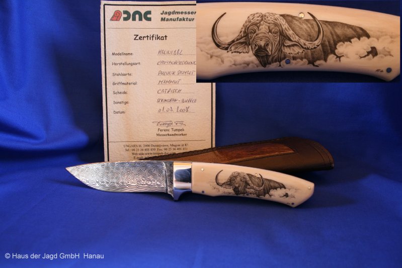 DNC Ferenc Tumpek Handarbeitsmesser "St. Hubertus", Chromdamastklinge 120 Lagen, Klingenlänge 100 mm,