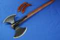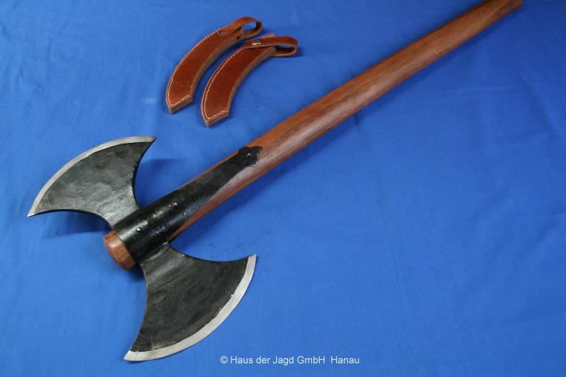 Wikinger Doppelaxt aus Kohlenstoffstahl, geschmiedete Blätter, geschliffen, Ebenholzstiel