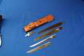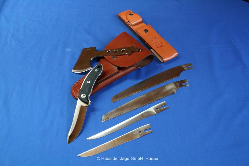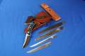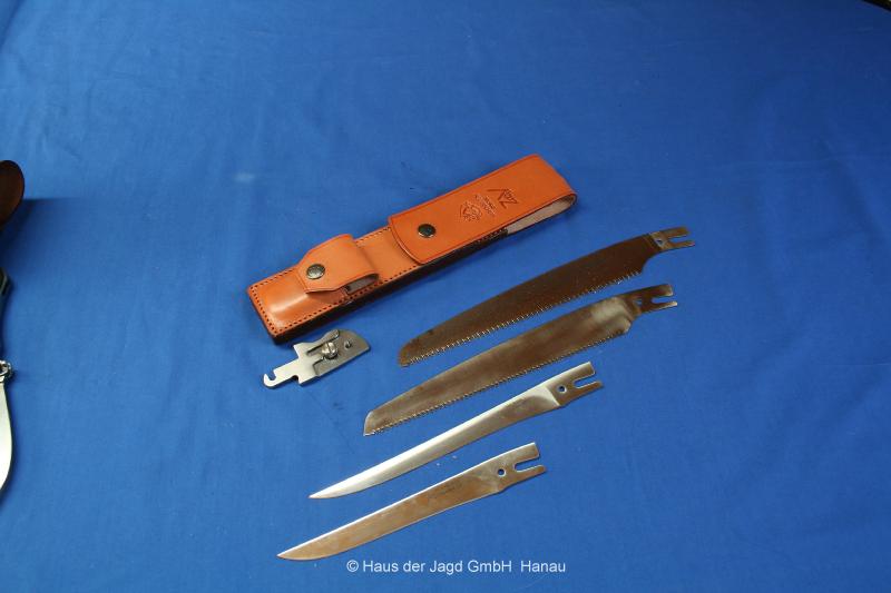 1 x Holzsäge 8,5"-21,6 cm / 1 x Ausbeinklinge 6"-15,2 cm / 1 x Filetierklinge 7,5"-19 cm, Lieferung mit fettgegerbter