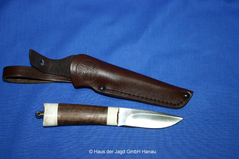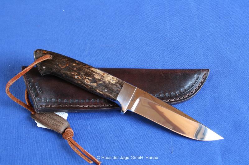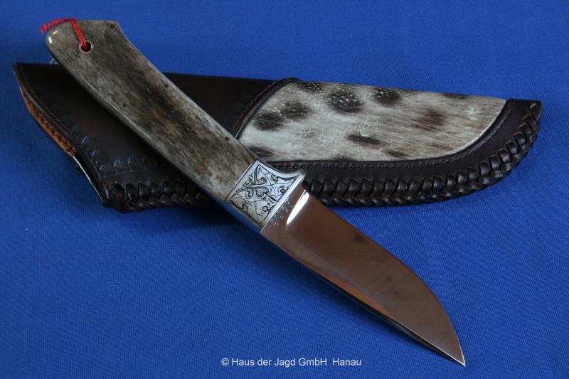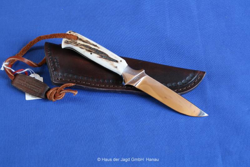 Klingenlänge 90 mm, Griffstück Hirschhorn, Lederscheide |