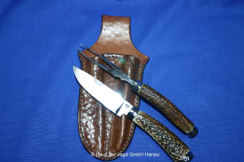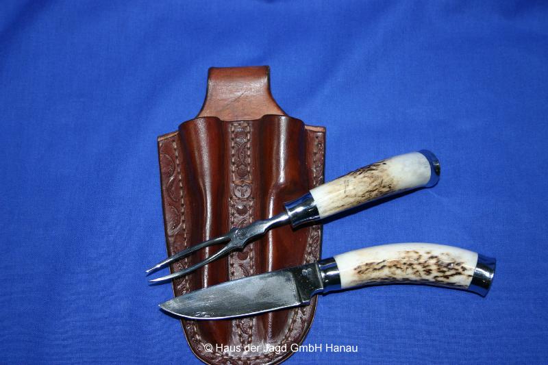 Knochengriff - Hirschhorn-Optik, Lederscheide |